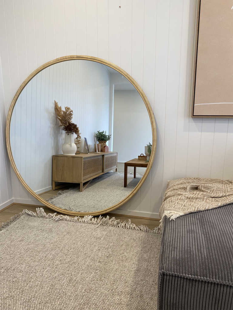 Flaunt your idyllic coastal style with the oversize rattan mirror, this mirror can be both the focal point or the understated touch you might be looking for.